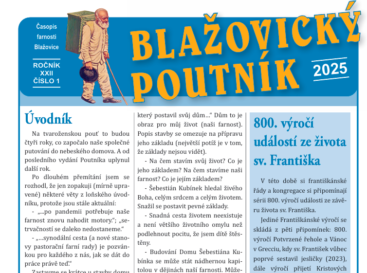 Prosíme, zasílejte články do letošního vydání Blažovického poutníka na emailovou adresu pavelpat@seznam.cz.